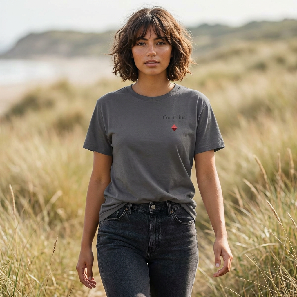 Cornelius Jersey City Logo Tee — Small Red Diamond Chest Print