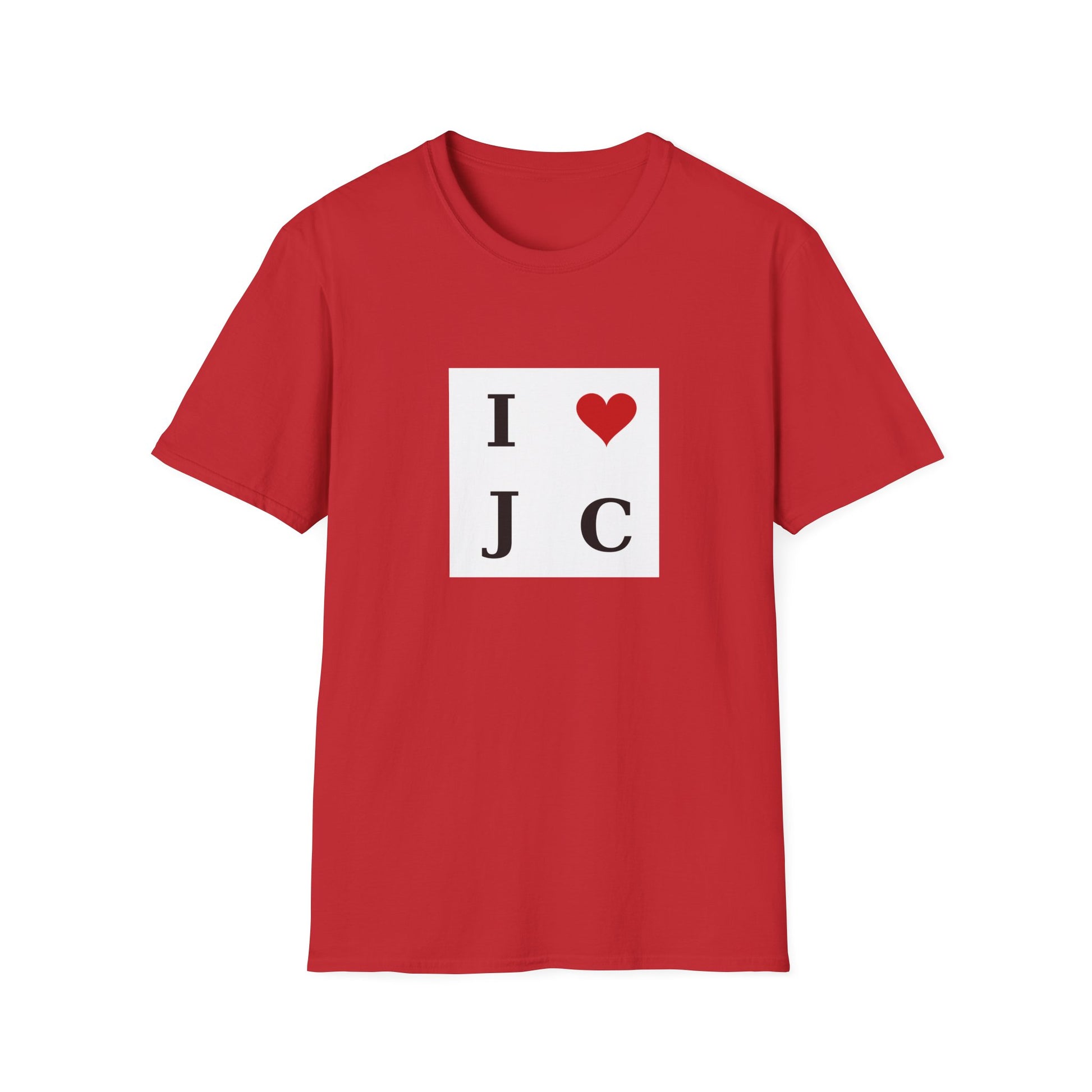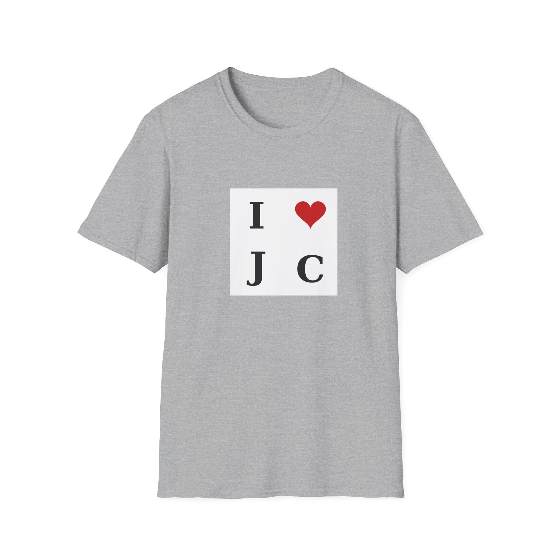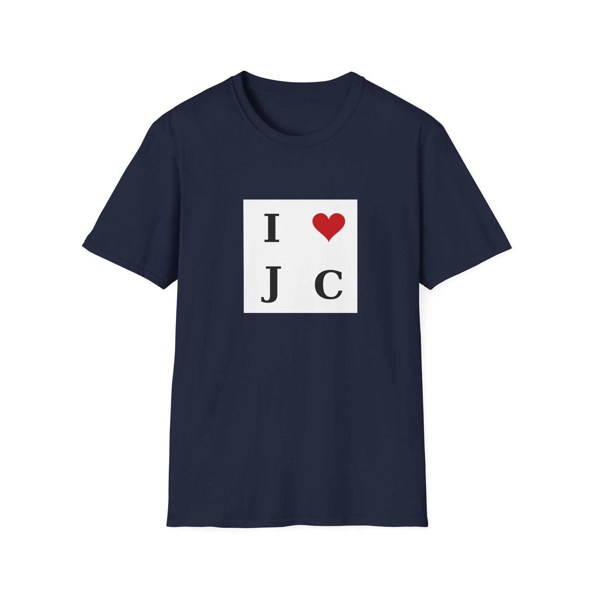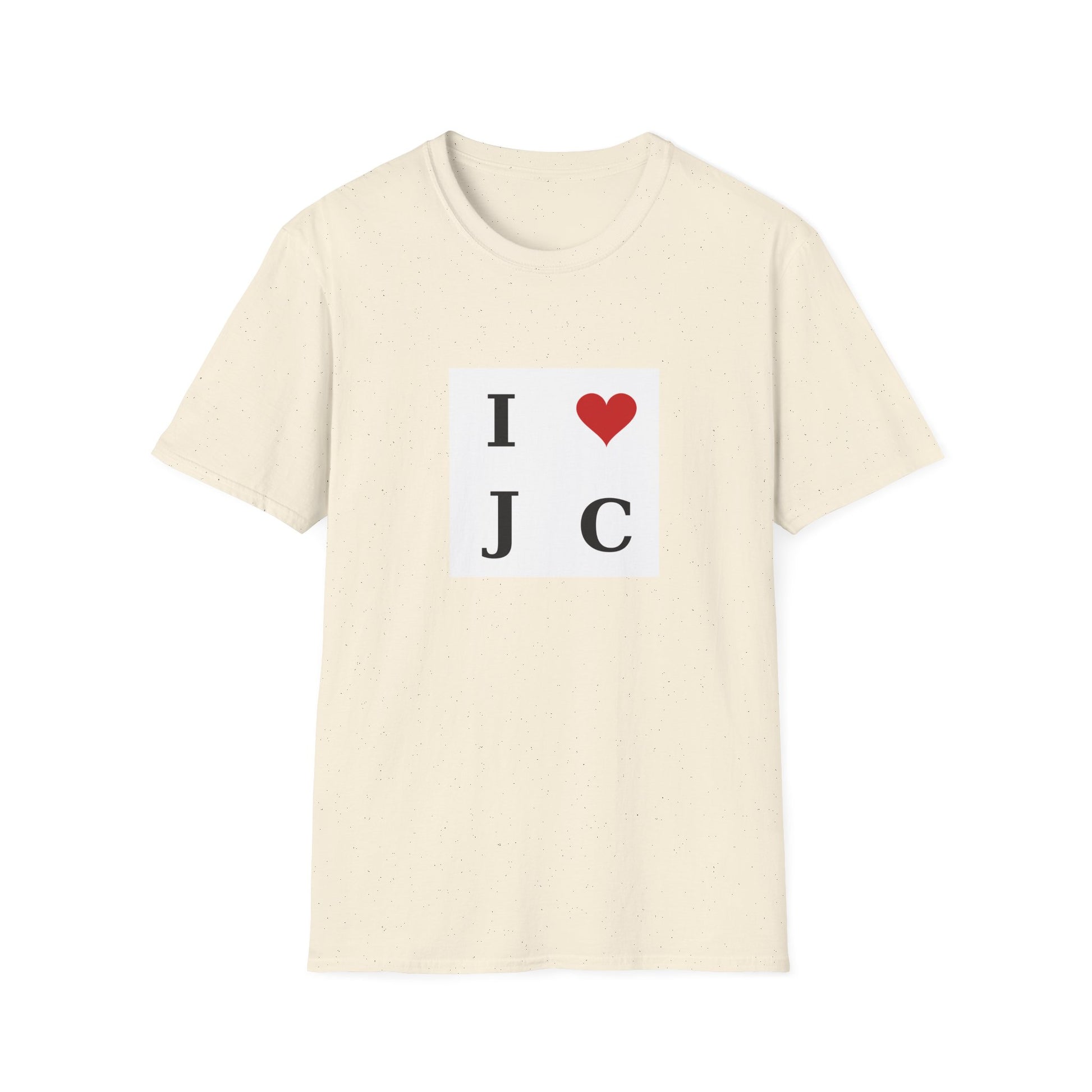 A soft, lightweight tee that speaks quietly but clearly: a simple “I ♥ J C” design centered on a clean white canvas. The smooth ring-spun cotton feels gentle against skin and drapes with a classic crew-neck silhouette. Wear it to show a personal connection—initials that mean something private, romantic, or nostalgic—without shouting. The tubular knit and taped shoulders keep the fit neat over time. Sleeve and neck prints use high-quality DTF/DTG methods for crisp color and lasting detail. Comfortable enough for everyday wear, this shirt settles into weekend coffee runs, low-key date nights, or relaxed gatherings where subtle sentiment matters.